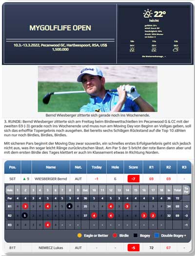 Dort wo es technisch möglich ist, werden wir auch einzelne Scorekarten der Österreicher in Spielberichten und bei den Scores der Österreicher einbinden, für mehr Detailinformationen.