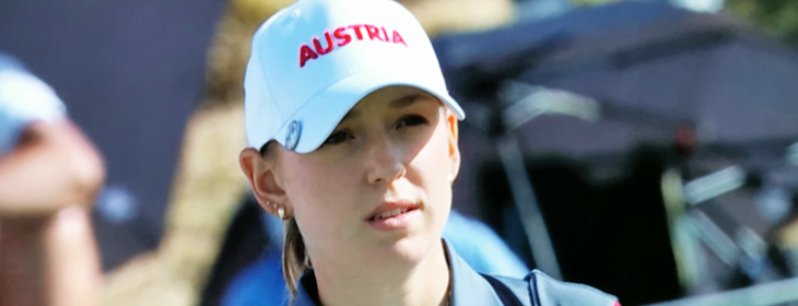 verzieht ihren ersten Grünschlag rechts ins Rough und schiebt dann aus knapp 5 Metern den Par-Putt vorbei, womit auch sie gleich am Eröffnungsloch in die falsche Richtung marschiert. Am ersten Par 5 verzieht die Steirerin ihren Layup ins Rough, lässt dann auch noch die Annäherung zu kurz und kann aus 5 Metern das Par nicht mehr retten.