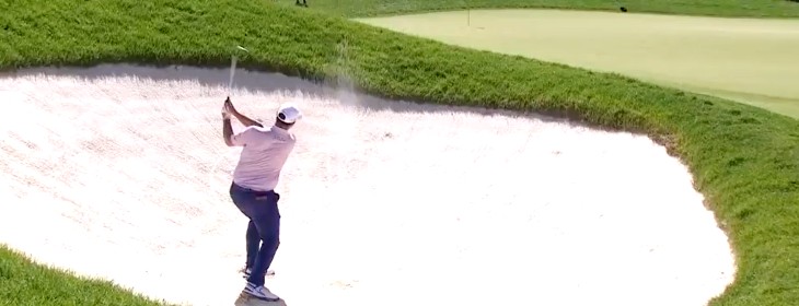 Dort gerät dann auf der 10 die Annäherung etwas zu lang und macht es sich unangenehm im Rough gemütlich. Da im Anschluss der Dreimeterputt zum Par nicht fällt, kann er das zweite Bogey des Tages nicht mehr abwenden. Mit einem starken Chip legt er sich zwar am Par 5 danach gleich wieder eine Birdiechance auf, allerdings will das Gerät fürs Kurzgemähte nach dem Superputt zu Beginn auch weiterhin nicht wirklich auf Temperatur kommen. Nach einem starken Sandsave am Par 3 der 12 ergibt sich nach sehenswerter Annäherung dann schon auf der 13 die nächste Chance, doch auch weiterhin bleibt der Putter noch kalt.