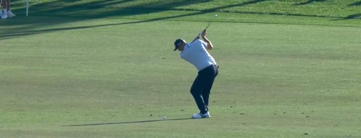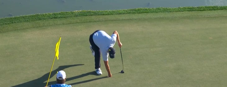 Dass an diesem Tag aber irgendwie der Wurm drin ist, macht sich dann zu Beginn der “Bear Trap” bemerkbar: Der Tee Shot prallt von der Brüstungsmauer zurück ins Wasser, womit er sich sogar ein Doppelbogey umhängt und so plötzlich wieder nur noch bei 1 über Par rangiert. Nach einem soliden Par auf der 16, knallt er dann zum Abschluss der Bärenfalle am Par 3 der 17 den Abschlag bis auf 1,5 Meter zur Fahne und dreht sein Tagesscore einmal mehr wieder zurück auf Anfang.
