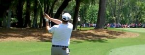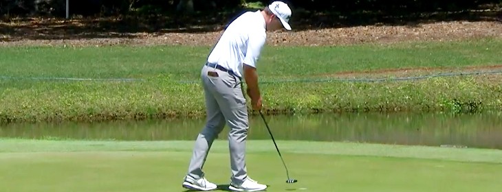 Auch danach hat der Longhitter in der frühen Phase vor allem mit den Eisen so seine liebe Mühe, denn sowohl auf der 3 als auch am schwierigen Par 3 der 4 verfehlt er die Grüns, scrambled sich aber immerhin mit sehenswertem Kurzspiel zu den nächsten wichtigen Pars. Am zweiten Par 5 passt dann aber das Wedge bis auf zwei Meter und da er auf der 6 gleich die nächste Annäherung auf ähnliche Distanz zur Fahne legt und beide Male den Putter gewinnbringend auf Temperatur hat, bleibt er halbwegs an der Spitze dran.