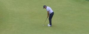 Auch danach lässt er nichts weiter anbrennen und behält die weiße Weste weiterhin an. Auf der 16 erreicht er aus dem Rough noch problemlos das Grün, auf der 17 geht sich diese Übung aber nicht mehr aus und da er aus dem Grünbunker den Ball nicht zwingend genug zur Fahne bringt, erwischt es ihn am schwierigen Schlussstretch des LA CC aus sechs Metern schließlich mit dem ersten Bogey. Der Longhitter zeigt sich aber einigermaßen unbeeindruckt und legt sich auf der 18 die erste richtig gute Birdiemöglichkeit auf, allein der Putter will aus gut zwei Metern nicht so richtig mitspielen.