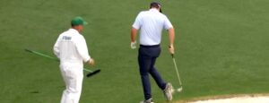 Auf der 10 hat er dann nach der Annäherung jedoch ein weiteres Mal Sand im Getriebe und da diesmal der rettende Parputt aus sechs Metern knapp nicht fällt, rutscht er prompt wieder auf Level Par zurück. Nach einem ganz souveränen Par zum Start in den Amen Corner auf der 11, kann er sich schließlich am berühmten darauffolgenden Par 3 nach knapp verfehltem Grün nicht mehr zum Par scramblen und hat damit erstmals ein Plus als Vorzeichen stehen.