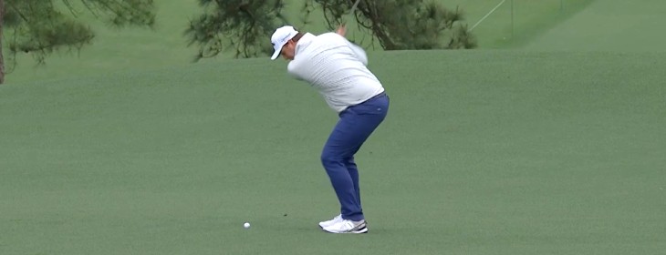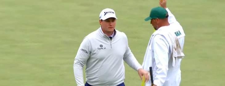 Auf der schwierigen 10 lässt er sich zum Start in die Backnine dann einen unangenehmen Tester aus knapp 1,5 Meter zum Par übrig, besteht diesen aber ohne große Schwierigkeiten und biegt so bei Level Par zum dritten Mal in den Amen Corner ab. Auf Golden Bell, dem berühmten Par 3 der 12, hat er nach einem wild verzogenen Teeshot richtig Glück, dass der Ball nach Cartweg und Hang von eben diesem noch zurückkullert. Da dann auch der Viermeterputt zum Par noch das Loch findet, hält er sich hartnäckig bei Level Par.