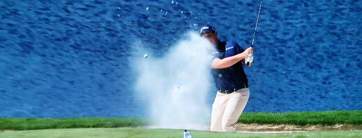 An der drivebaren 14 parkt Sepp den Ball im Grünbunker ein, was sich als guter Break erweist, nachdem souverän das Sandy Birdie gelingt. Den Birdie-Hattrick schnürt er am anschließenden Par 5 nach perfekter Vorarbeit im langen Spiel und lasergenauem Chip; damit ein willkommener Puffer vor der berüchtigten “Green Mile” im Finish.