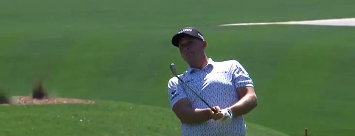 Am Par 5 der 11 versandet zwar die Attacke im Potbunker vor dem Grün, der Sandschlag gelingt aber auf den Punkt und aus einem Meter kann er schließlich sein Score erstmals am Samstag in den Minusbereich drücken. Nach längerer Warterei in der 12. Teebox, wassert er schließlich am kurzen Par 4 zwar den Abschlag, versenkt nach Drop jedoch fast den dritten Schlag im Loch und kommt so am Ende noch ungeschoren mit Par davon. Auch auf der 14 steigt der Stresslevel nach einem wild verzogenen Drive ziemlich an, vom Rough der gegenüberliegenden Spielbahn aus rettet er sich aber noch zu einem weiteren wichtigen Par.