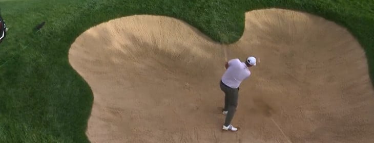 Vom Tee aus zeigt sich der zweifache PGA Tour Champion aber auch danach in der Anfangsphase sehr sicher und knallt auf der 3 schließlich auch erstmals ein Eisen richtig stark ins Grün, womit er das Bogey von der 2 aus einem guten Meter prompt wieder egalisiert. Nachdem jedoch der Teeshot am Par 3 danach deutlich zu weit nach rechts zieht, er aus unangenehmer Lage aus der Native Area den Ball nur im Grünbunker unterbringt und danach noch dazu zwei Putts benötigt, poppt sogar das Doppelbogey auf der Scorecard auf.